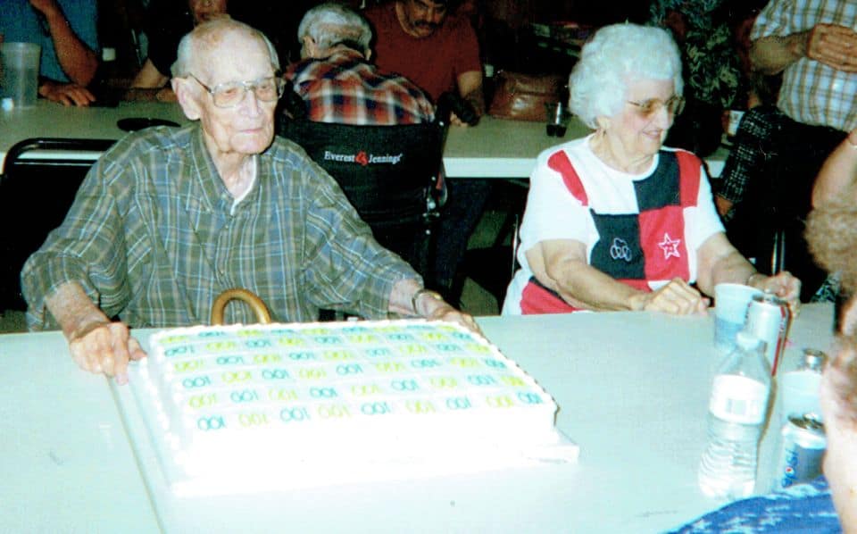 On July 7, 2018 Rosie’s large extended family had a family reunion and used the event to spring an early surprise birthday party for Everett (and Rosie!), complete with cake with 100 repeated on top. Rosie is on the right.