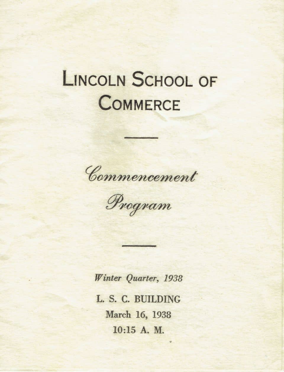 After high school he attended the Lincoln School of Commerce. He graduated after completing courses business administration. See images below for graduation ceremony.